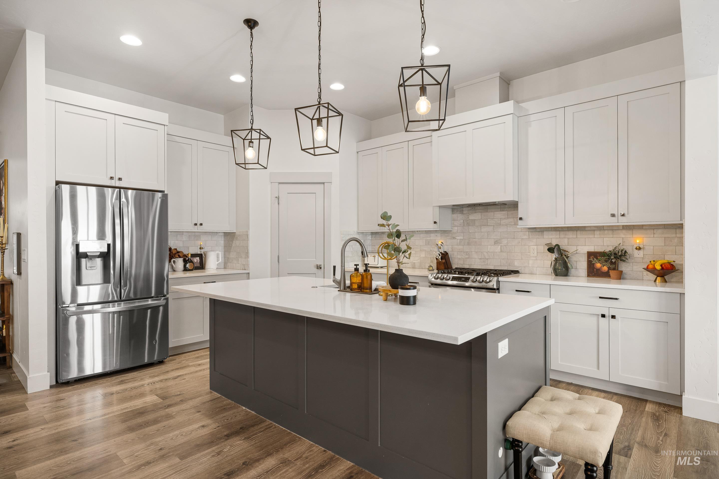 Built by award-winning O2 Construction in 2019, this thoughtfully designed single-level home blends tasteful design finishes with functional living spaces. Offering 2,196 square feet, the home features 4 bedrooms, 2 bathrooms, and an oversized (26' x 22') 2-car garage, with a flexible den/bonus room easily serving as the fourth bedroom, office, or a play room. A grand 12-foot ceiling entry welcomes you inside, leading to an open-concept layout centered around an impressive 8-foot kitchen island. The kitchen is designed for both everyday living and entertaining, complete with quartz countertops, gas LG appliances, and an appliance-garage pantry. Off the garage is a dedicated mud room connecting seamlessly to the laundry area, while double sliding doors open to a concrete patio and low-maintenance backyard, perfect for effortless indoor-outdoor living. The private primary suite serves as a true retreat, featuring a spacious bedroom, an expansive 12-foot vanity, tile walk-in shower, soaking tub, and walk-in closet. Residents enjoy access to community amenities including a pool and scenic walking paths, adding to the home’s relaxed and connected lifestyle. Cazador has a friendly and inviting neighborhood vibe where community feels like family. Modern construction, quality craftsmanship, and intentional design come together in this move-in-ready home you won’t want to miss.